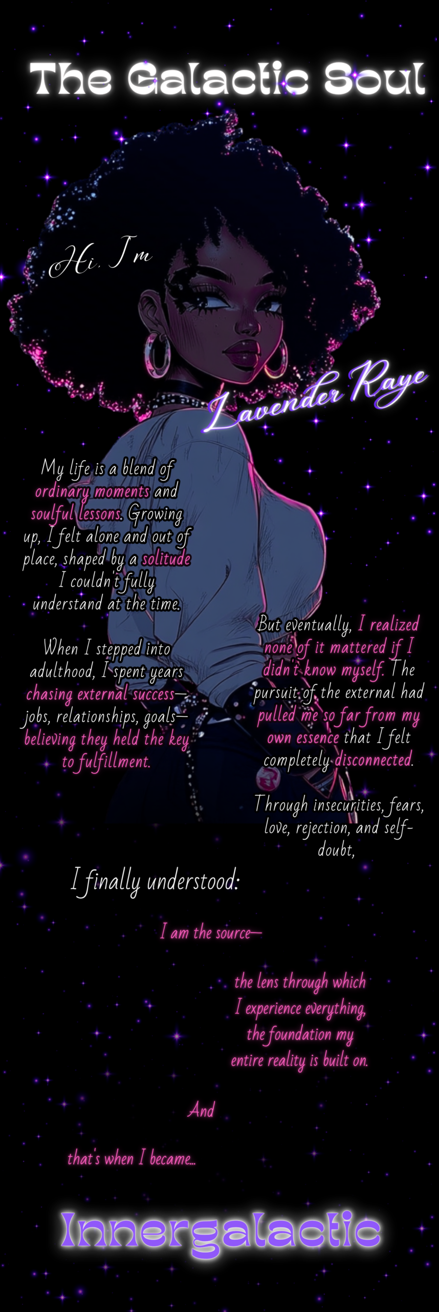 This blog is a reflection of my essence—my inner cosmos. The name Innergalactic perfectly encapsulates my purpose: to explore and share the vast, cosmic realm of my mind. Inspired by the word “intergalactic,” this space represents a fusion of creativity, introspection, and spiritual attunement—a celebration of the boundless universe within us and the beauty of expressing it.