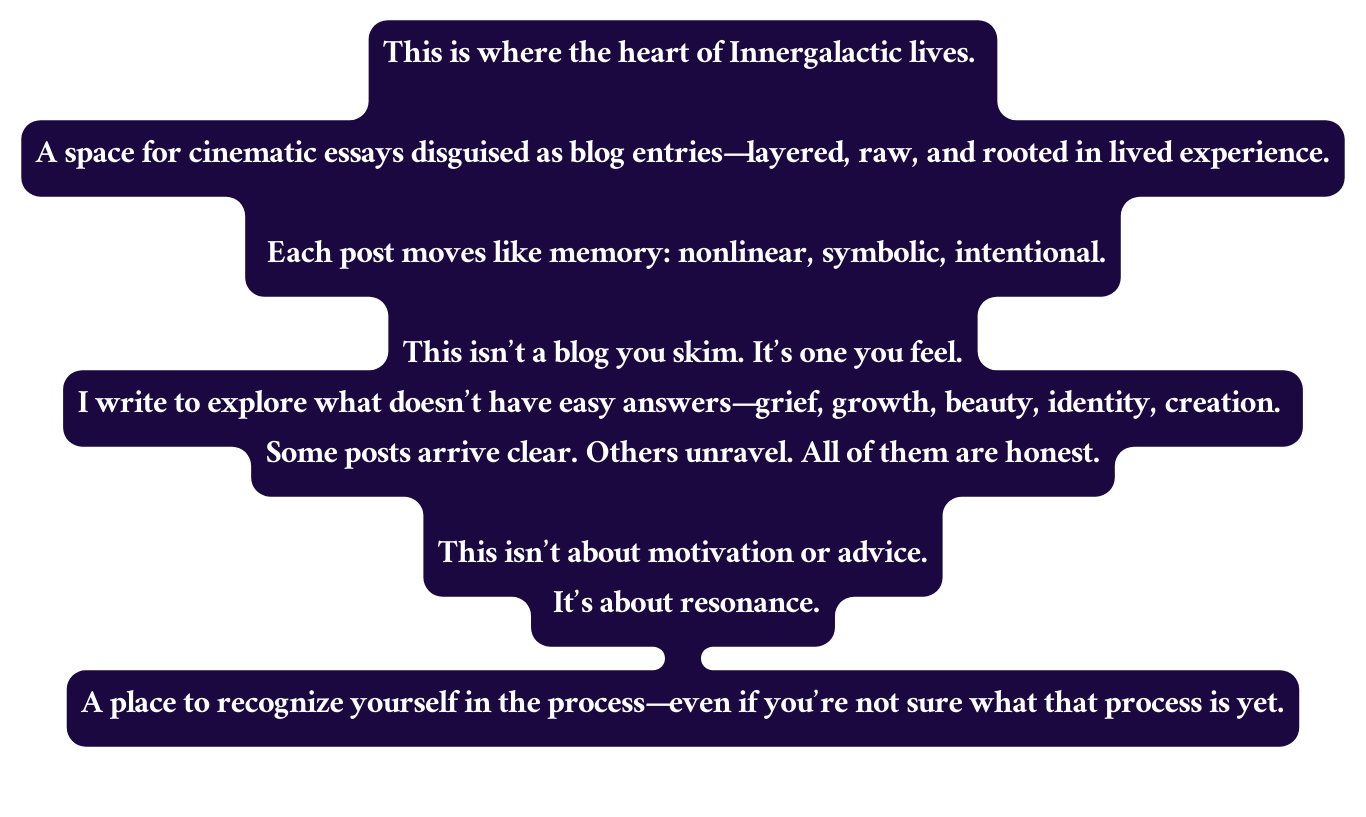An intimate reflection on purpose, pressure, and freedom—questioning inherited definitions, releasing performance, and discovering that being alive is enough, with intention shaping how existence is expressed in everyday lived moments.